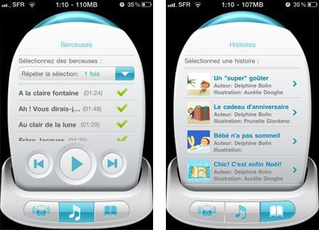 - De lui lire une histoire grâce à une petite base de données de comptines fournies avec l'application