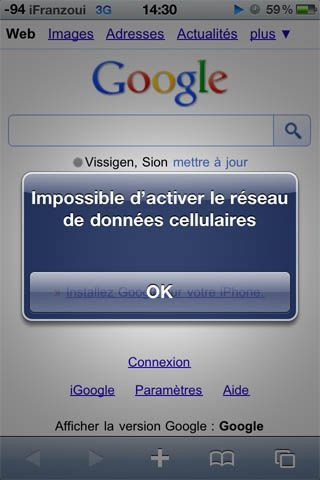 Les clients de l'opérateur Swisscom ont eu une drôle de surprise aujourd'hui en essayant de se connecter à internet en 3G avec un smartphone. En effet, depuis ce matin entre 8 et 10 heures, une panne générale à affecté toute la Suisse. Elle est due au redémarrage d'une banque de données en raison de problèmes sur le réseau GPRS.