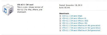 Alors qu'on avait annoncé une sortie de l'iOS 4.2 pour le 24 novembre prochain, dans cet article, voilà qu'Apple sort l'iOS 4.2.1 en version Gold Master, pour les développeurs.