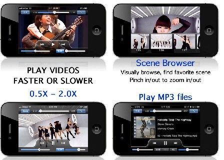Cette application vous permet de charger des vidéos avec votre cable USB dans votre iDevice sans iTunes. Vous avez ensuite la possibilité d'agir sur ces vidéos en changeant la vitesse de lecture. Et vous pourrez alors les enregistrer soit vers votre ordinateur, soit dans la pellicule de votre iPhone/iPad/iPod.