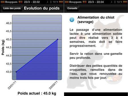 Effectivement avec cette application, vous pourrez voir évoluer le poids de votre compagnon (ou de vos compagnons) et de gérer au mieux leur alimentation. Car si vous avez un chien ou un chat, vous savez que leur santé en dépend !