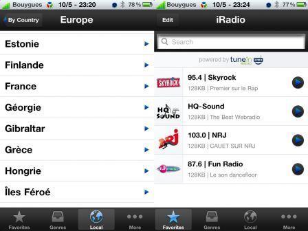 Bien sûr, iRadio permet avant tout d'écouter la radio. Et il m'est impossible d'annoncer le nombre exact de stations disponibles. Vous pouvez les choisir en les classant par pays ou tout simplement en vous géolocalisant. Toutes les radios s'y trouvent ainsi que de nombreuses webradios.