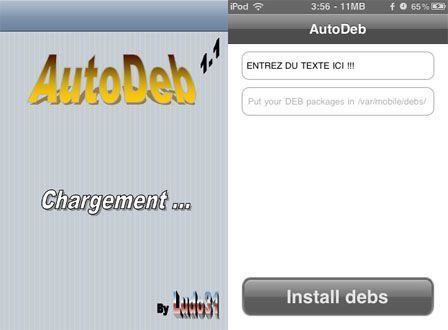 Grâce à l'application AutoDeb, vous n'avez plus besoin de respringer ni d'exécuter les commandes d'installation de debs dans MobileTerminal. Vous me direz certainement qu'il suffit de mettre les .deb dans Cydia/AutoInstall mais AutoDeb n'a pas besoin de rebooter (sauf exceptions).