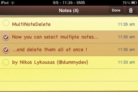 MultiNoteDelete est un nouveau tweak disponible gratuitement sur Cydia qui va vous permettre de supprimer plusieurs notes en même temps dans l'application Notes.