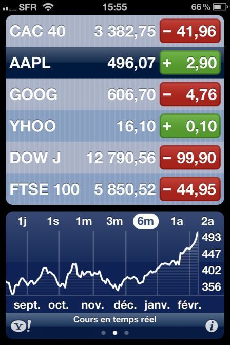 L'action Apple approche les 500 dollars (496,07 exactement), ce qui est assez incroyable.