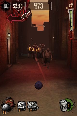 Les zombies sont partout sur l'App Store. Par contre, je ne crois pas les avoir déjà vus dans un jeu de bowling, mais je peux me tromper.
