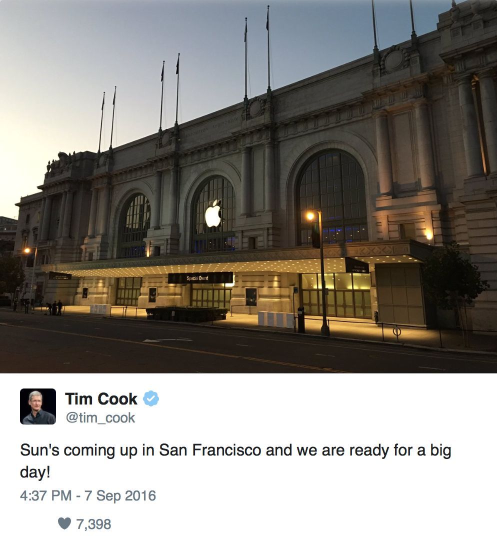 | 17h35 | Tim Cook fait du teasing sur Twitter.. Il manque juste la mention "Shot on iPhone 7"! |