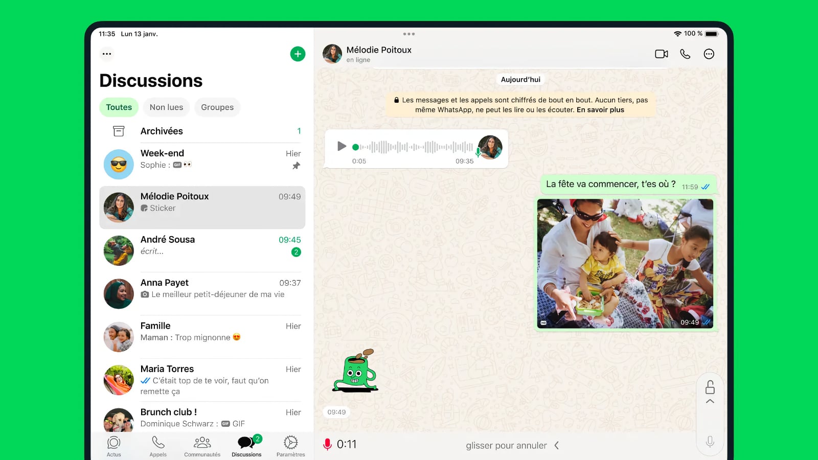 WhatsApp a annoncé la sortie d'une application iPad très attendue, qui sera proposée en plus des applications iPhone et Mac existantes. L'application devrait être lancée dans les prochains jours. Meta travaille aussi sur la version iPad d’Instagram.